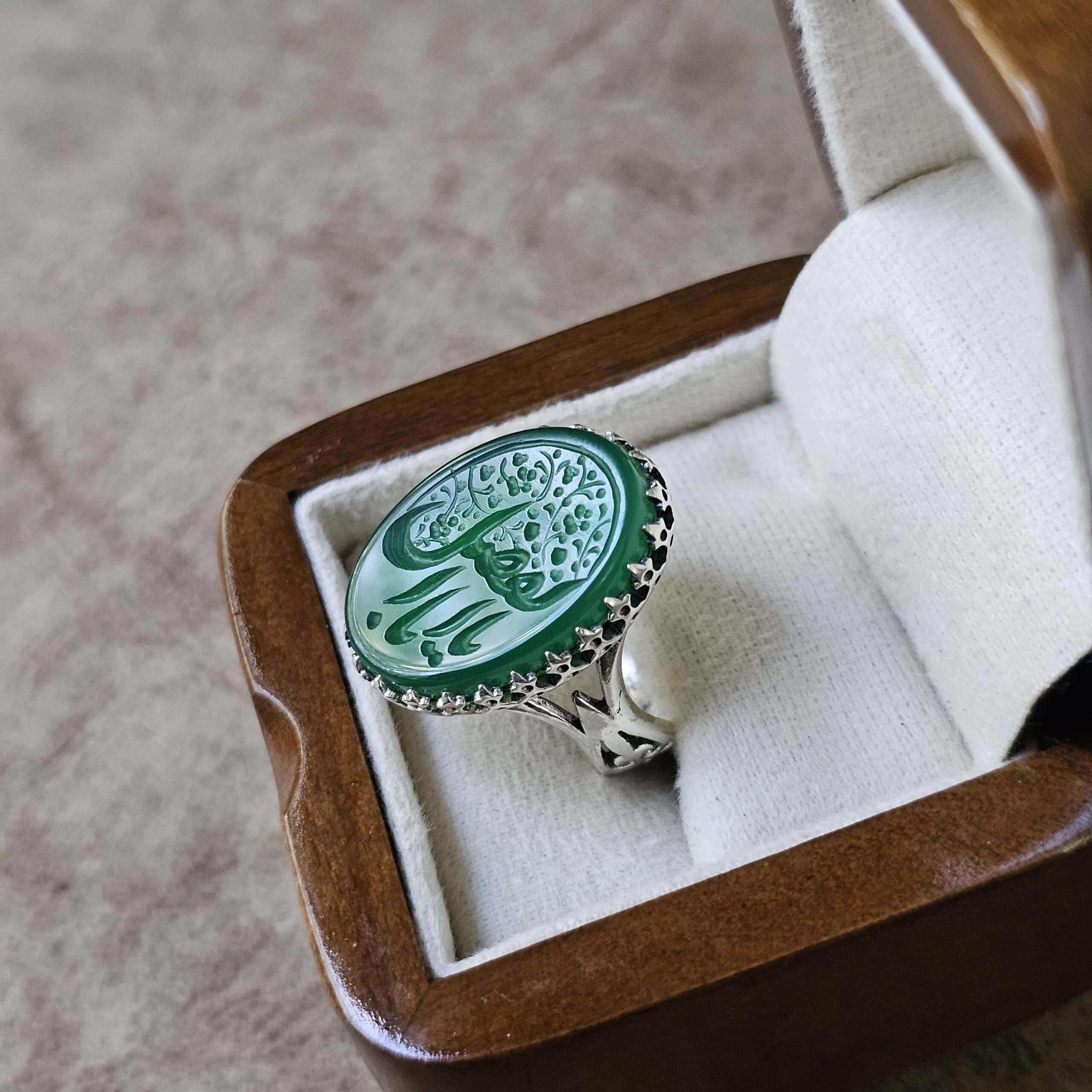 انگشتر عقیق سبز مردانه یکی از زیورآلات پرطرفدار و اصیل ایرانی است که علاوه بر زیبایی، بار معنوی و روحانی خاصی به همراه دارد. این انگشتر از سنگ عقیق سبز اصل ساخته شده و با حکاکی نام مبارک یا اباالفضل (ع) مزین شده است.