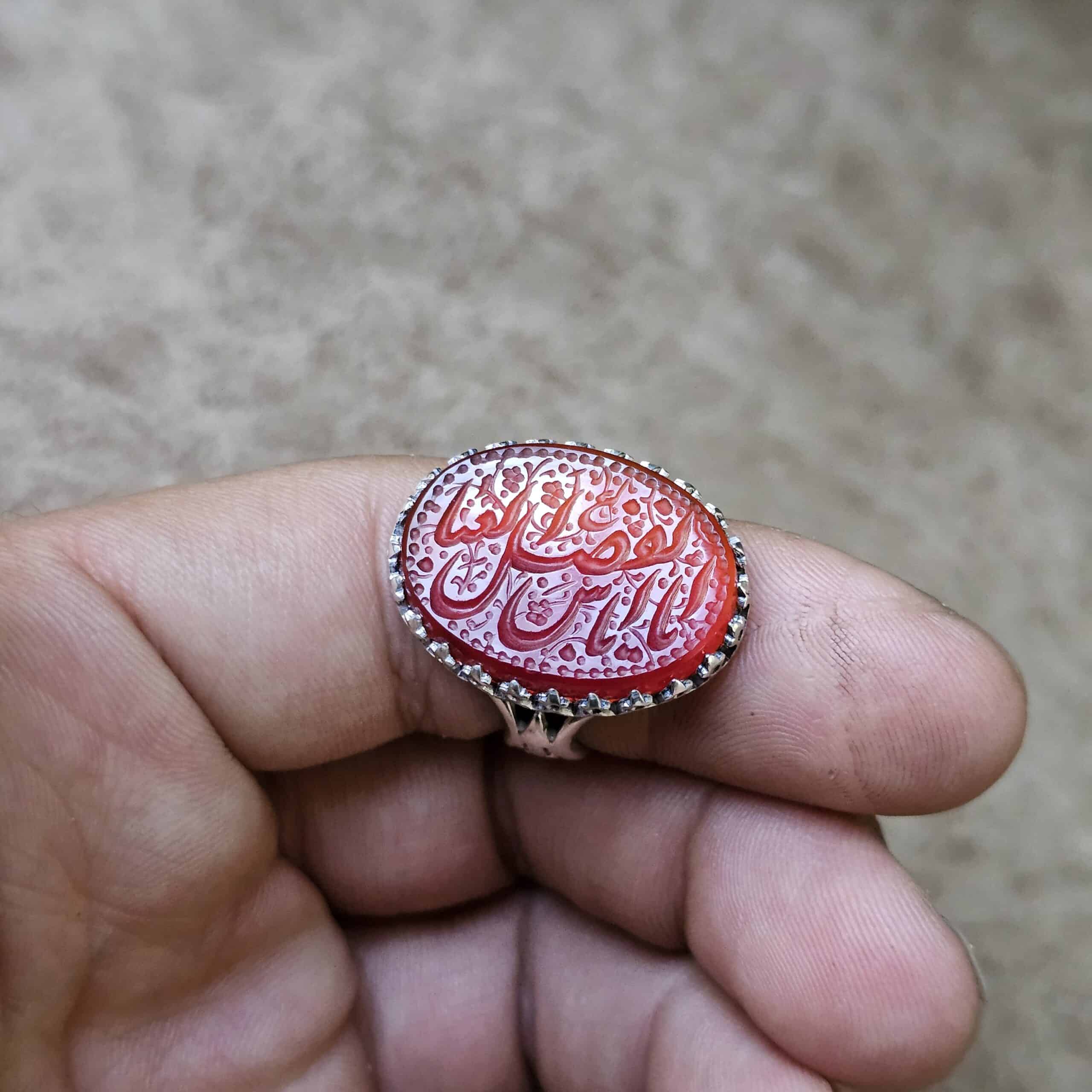 انگشتر عقیق اصل مردانه مزین به حکاکی نام مبارک یا اباالفضل العباس (ع)، زیوری ارزشمند و معنوی برای دوستداران اهل بیت (ع)