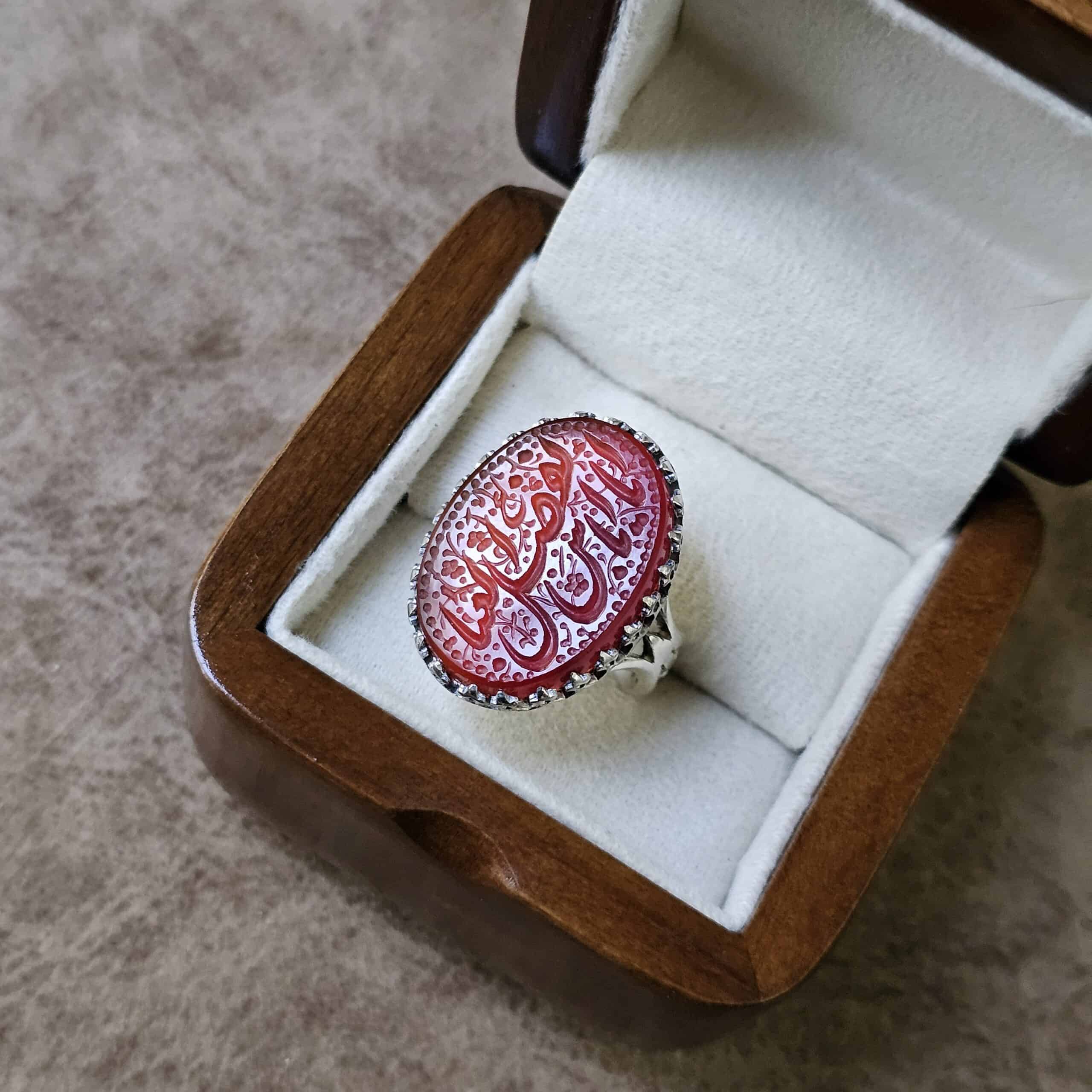 انگشتر عقیق مردانه یکی از محبوبترین زیورآلات سنتی و مذهبی است که علاوه بر جلوهای زیبا، بار معنوی خاصی دارد. این انگشتر با سنگ عقیق اصل ساخته شده و بر روی آن نام مبارک یا اباالفضل العباس (ع) با ظرافتی چشمنواز حکاکی شده است.