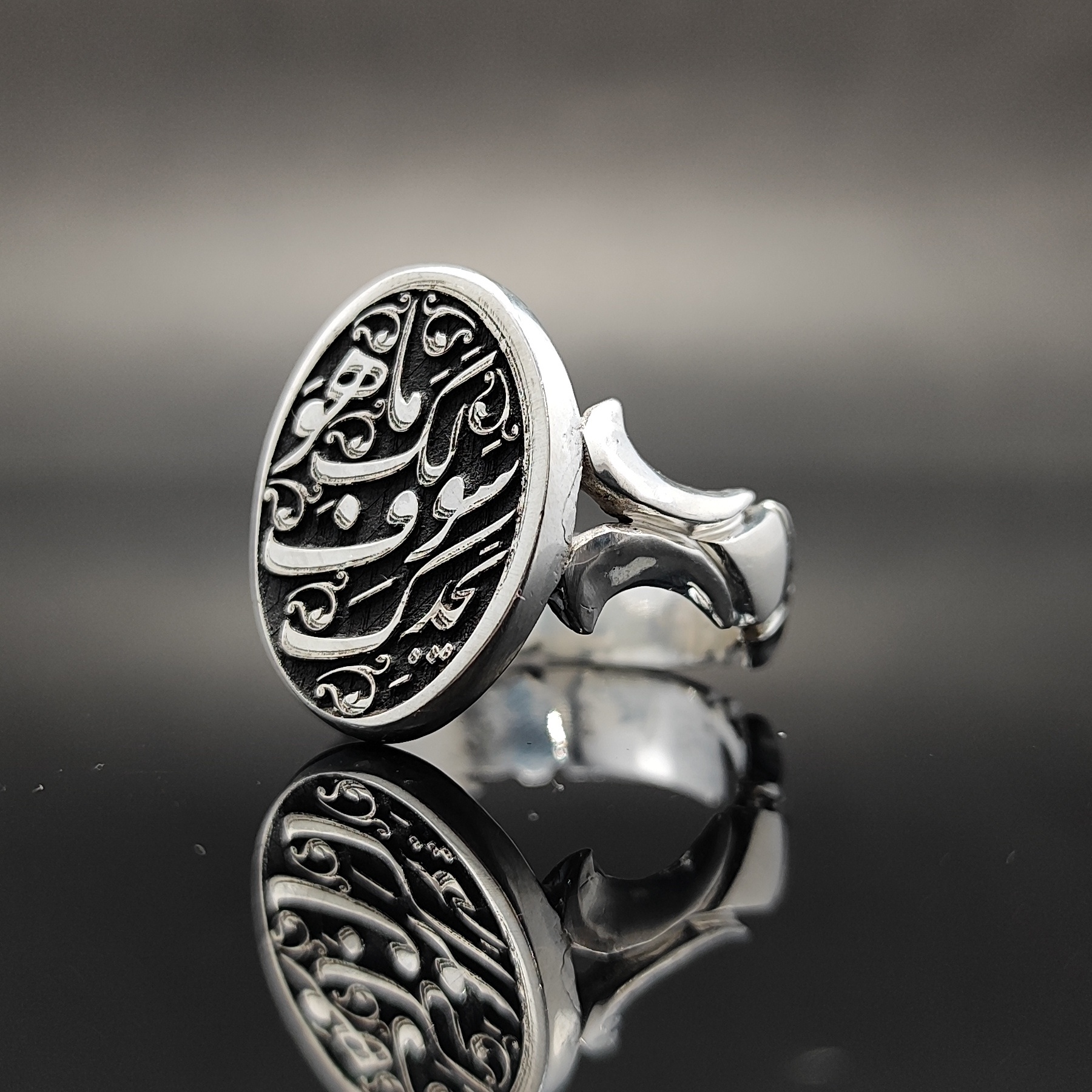 انگشتر نقره تمامدست با ذکر معنوی «ما هو لك سوف يجدك مدل 2»، ساختهشده از نقره اصل ۹۲۵ با طراحی خاص و فاخر.