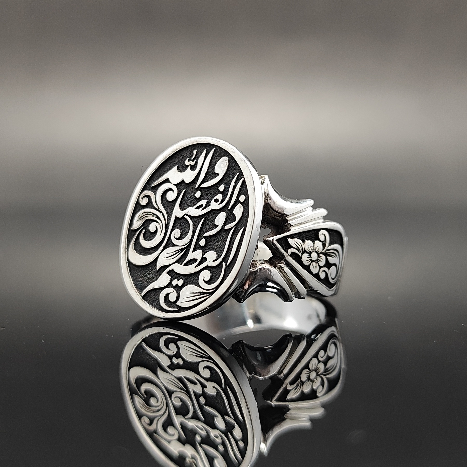 انگشتر نقره تمامدست با ذکر معنوی «والله ذوالفضل العظیم مدل 5»، ساختهشده از نقره اصل ۹۲۵ با طراحی خاص و فاخر.
