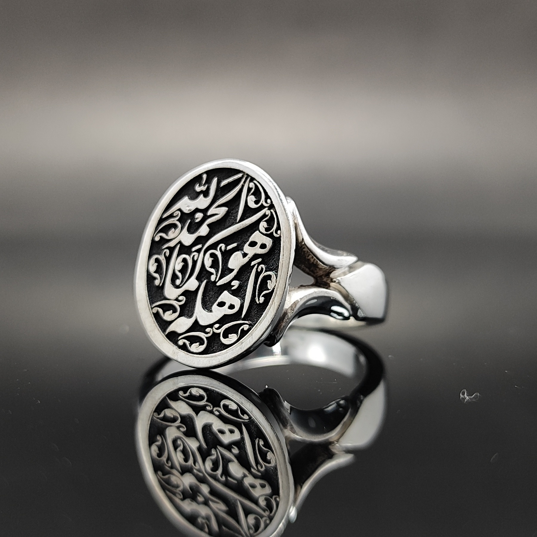انگشتر نقره تمام‌دست با ذکر معنوی «الحمدالله کما هو اهله مدل 4»، ساخته‌شده از نقره اصل ۹۲۵ با طراحی خاص و فاخر.