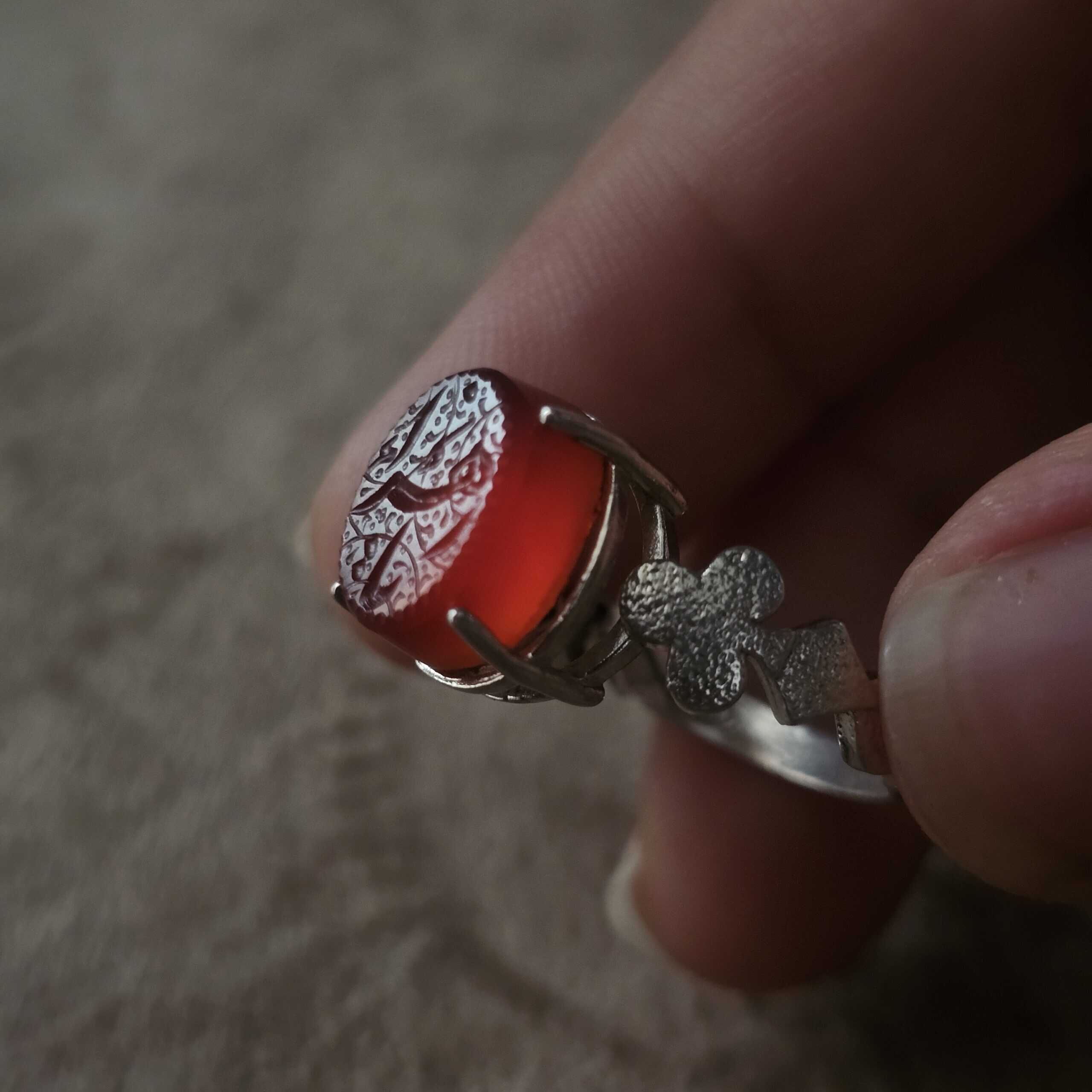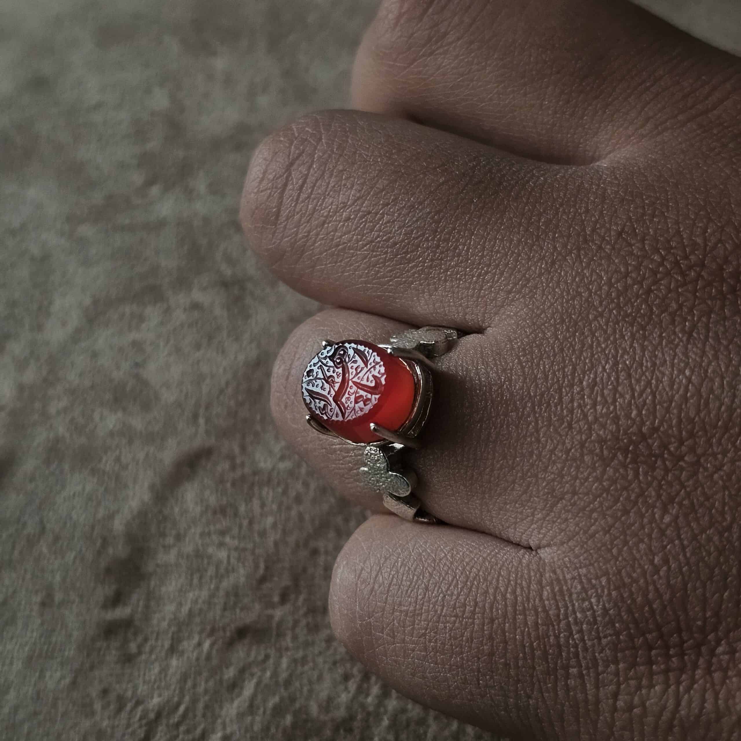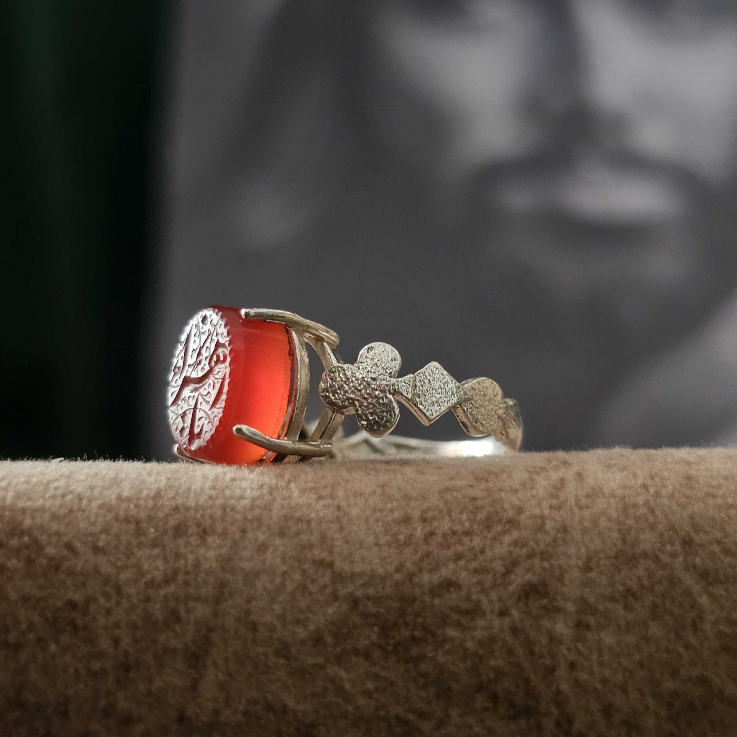رکاب آن از نقره با عیار ۹۲۵ ساخته شده که علاوه بر درخشندگی زیبا، دوام و کیفیت بالایی نیز دارد. طرح یا زهرا (س) با ظرافت روی نگین یا بدنه انگشتر حکاکی شده و حس آرامش و ارادت فاطمی را به همراه دارد.