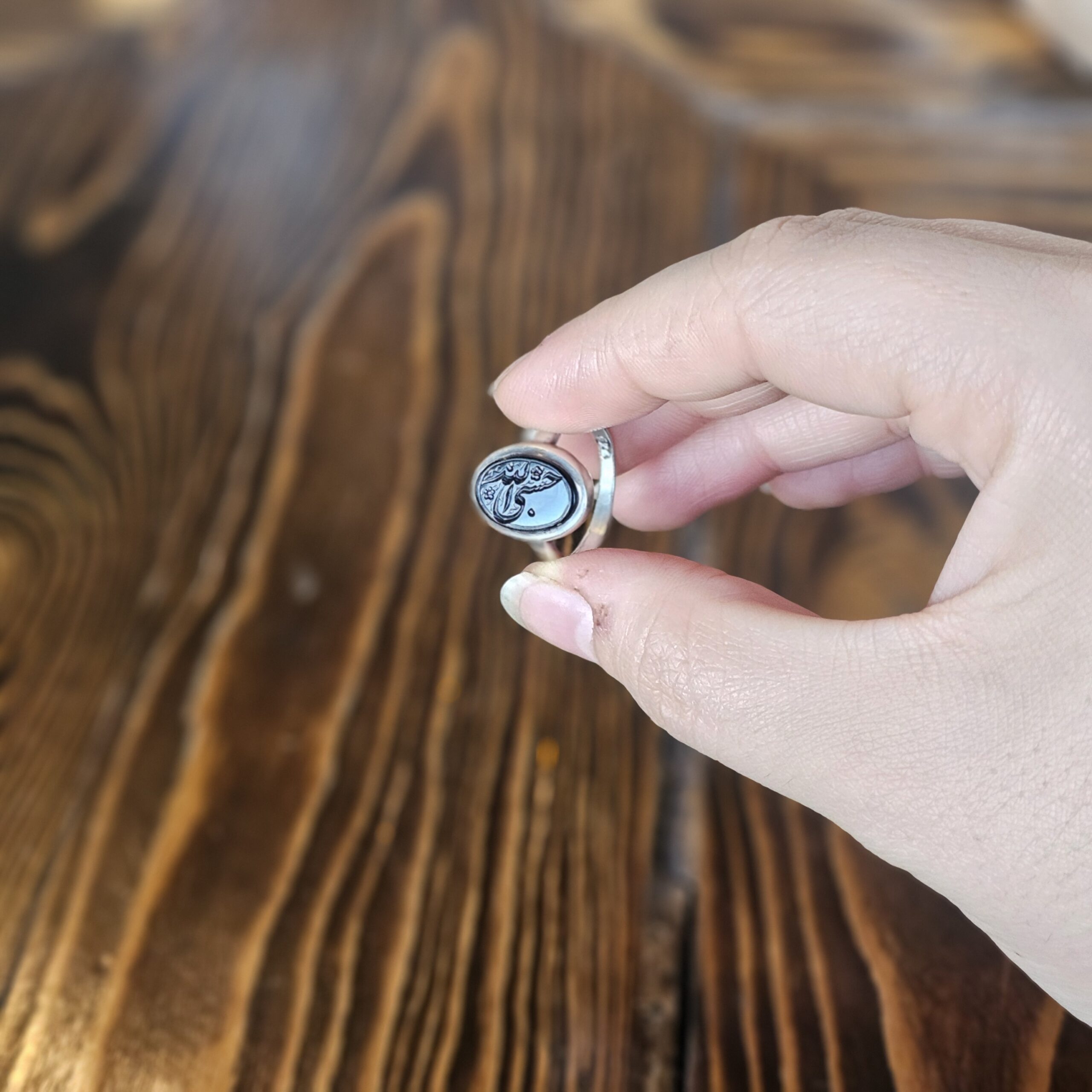 این انگشتر زنانه زیبا با نگین عقیق مشکی طبیعی و حکاکی روحبخش حسبیالله، یکی از محبوبترین مدلهای معنوی در بین بانوان است.