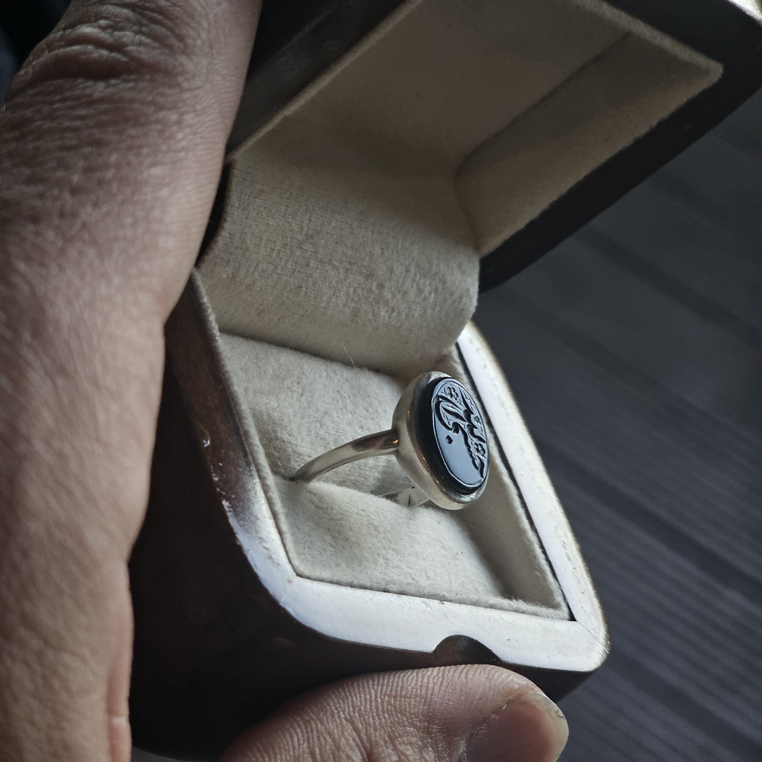 عقیق مشکی بهعنوان سنگی آرامشبخش و محافظ شناخته میشود و ترکیب آن با حکاکی حسبیالله، این انگشتر را به گزینهای ویژه برای بانوانی تبدیل کرده که به زیورآلات معنوی و انرژیبخش علاقه دارند.