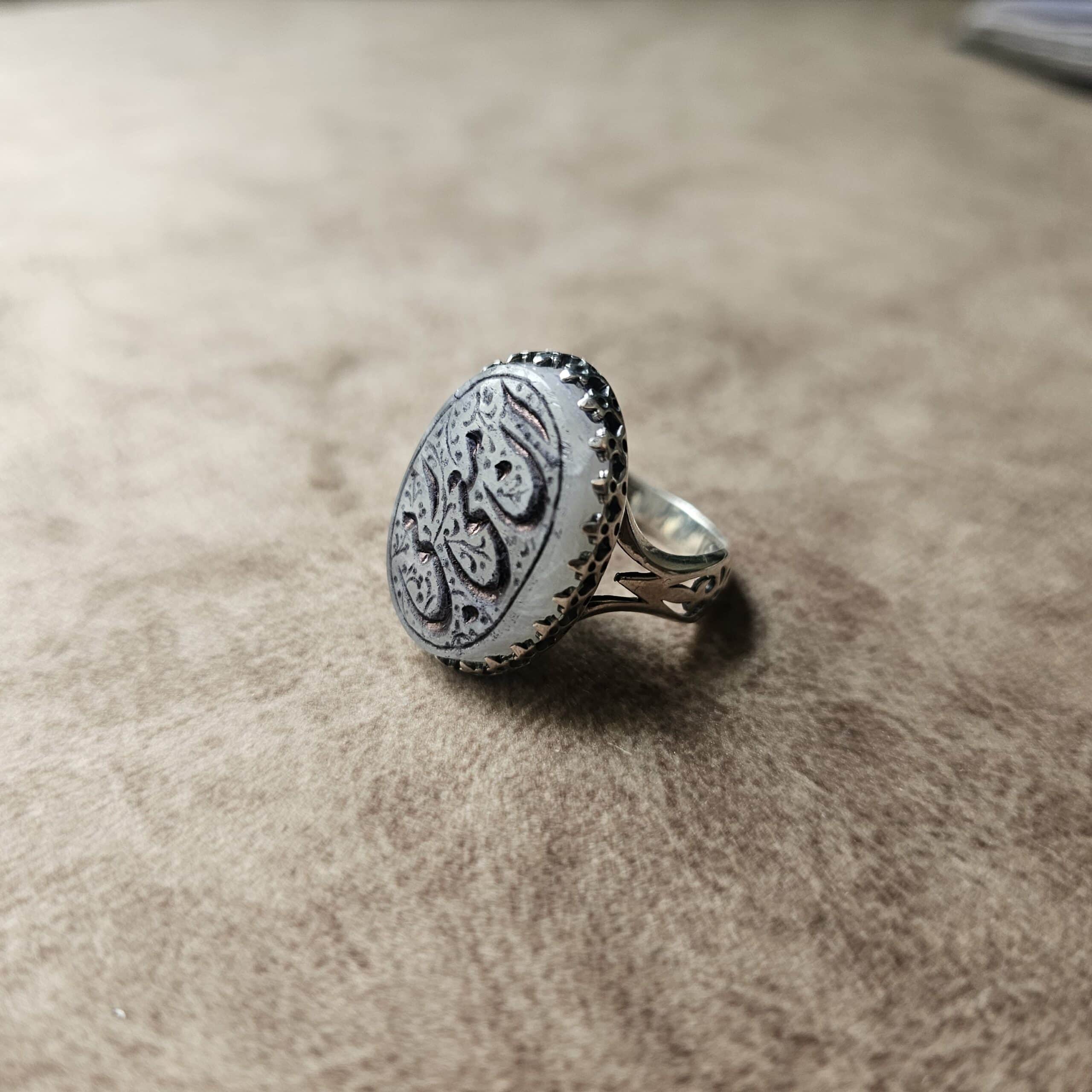 رکاب انگشتر از نقره خالص با عیار ۹۲۵ ساخته شده که درخشش و دوام بالایی دارد. این انگشتر نهتنها جلوهای معنوی دارد بلکه با طراحی کلاسیک و چشمنواز خود، انتخابی خاص برای علاقهمندان به زیورآلات مذهبی است.