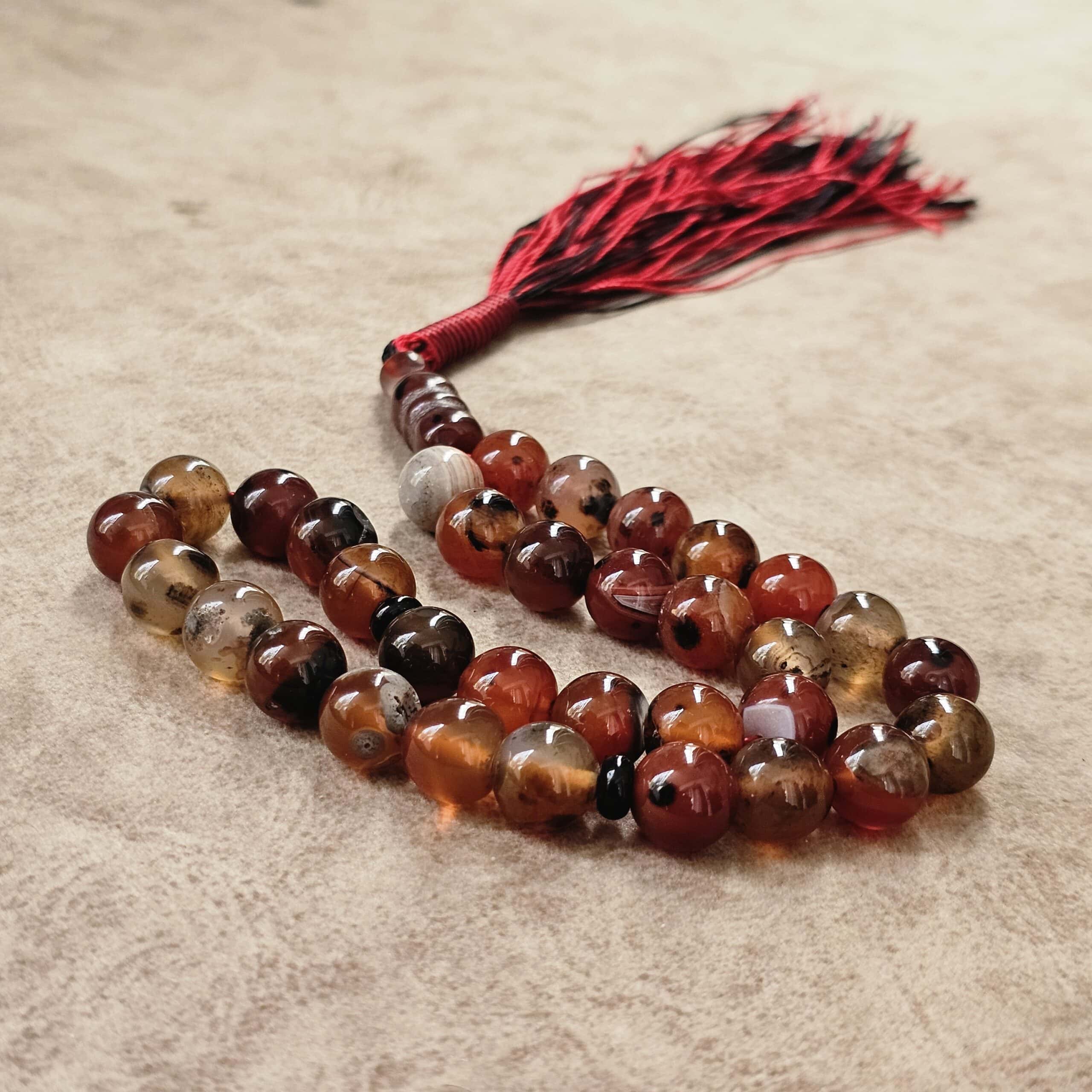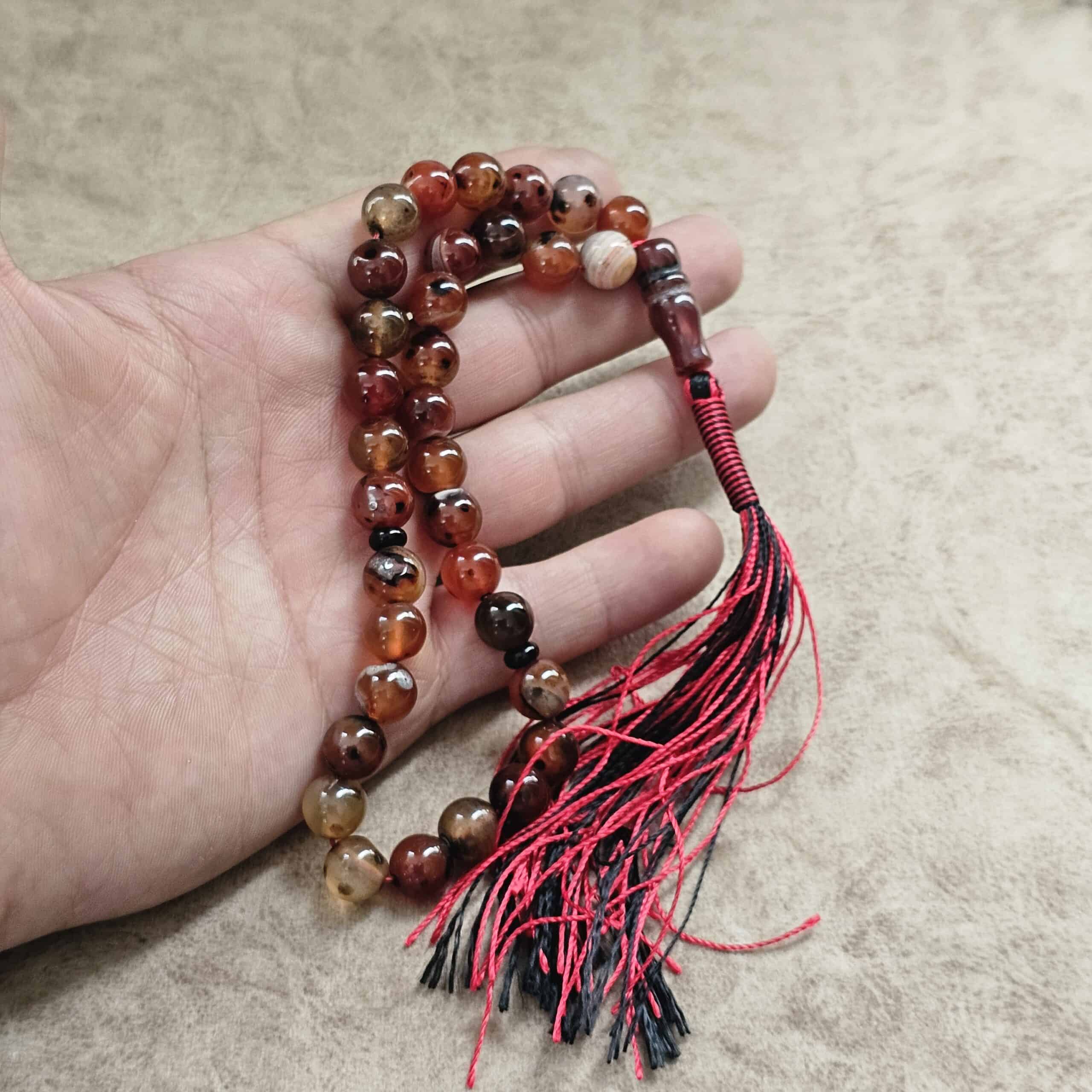 این تسبیح علاوه بر ارزش معنوی و خاصیت آرامشبخش سنگ عقیق، به دلیل طرحهای منحصربهفرد هر دانه، یک انتخاب شیک و ماندگار برای همراهی روزانه است.