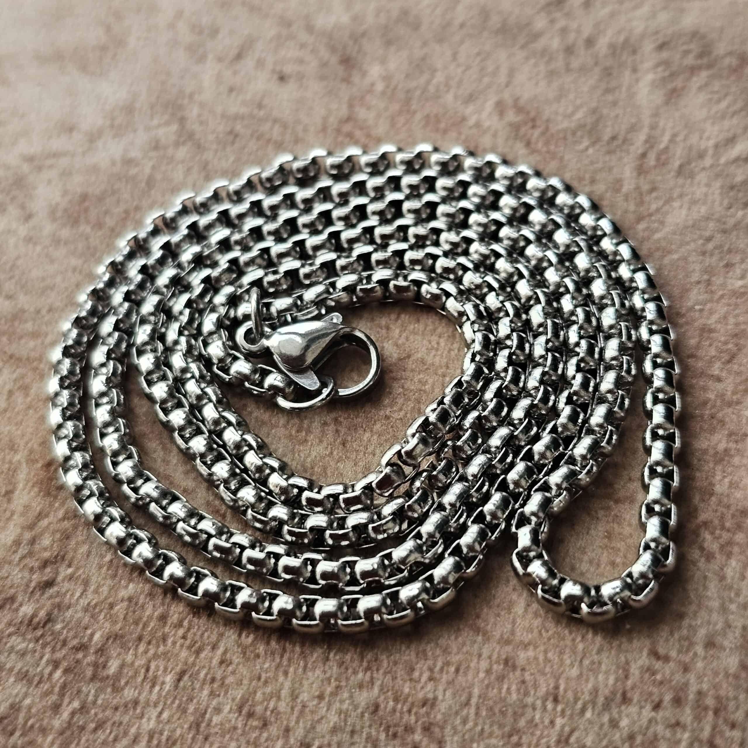 زنجیر استیل طرح ایتالیایی با رنگ ثابت و استحکام بالا؛ مناسب برای استفاده روزمره یا ترکیب با پلاکهای مذهبی و اسمدار.