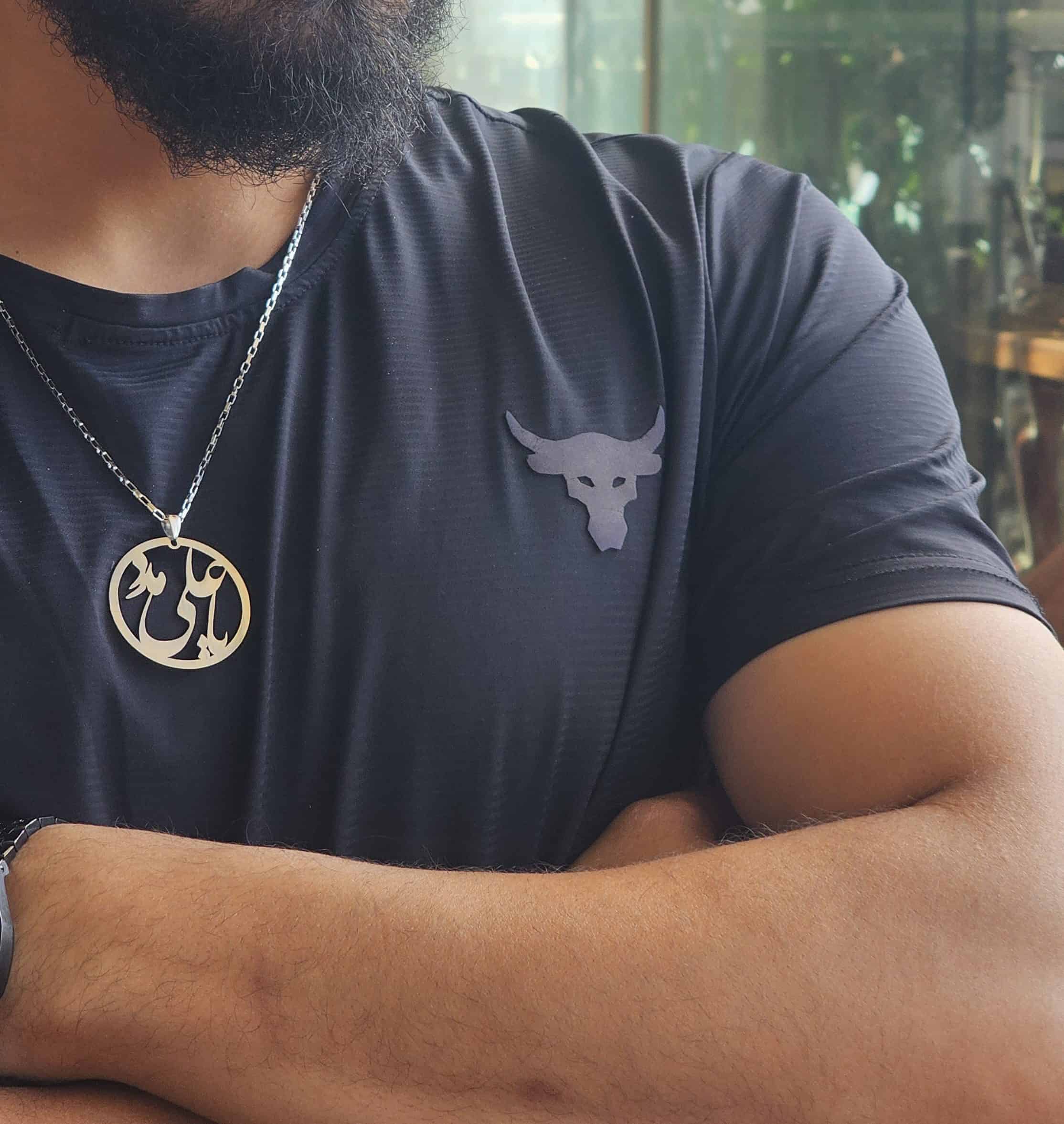 گردنبند استیل ضد زنگ و رنگ ثابت با طرح معنوی یا علی مدد (ع)؛ مقاوم، شیک و بادوام.