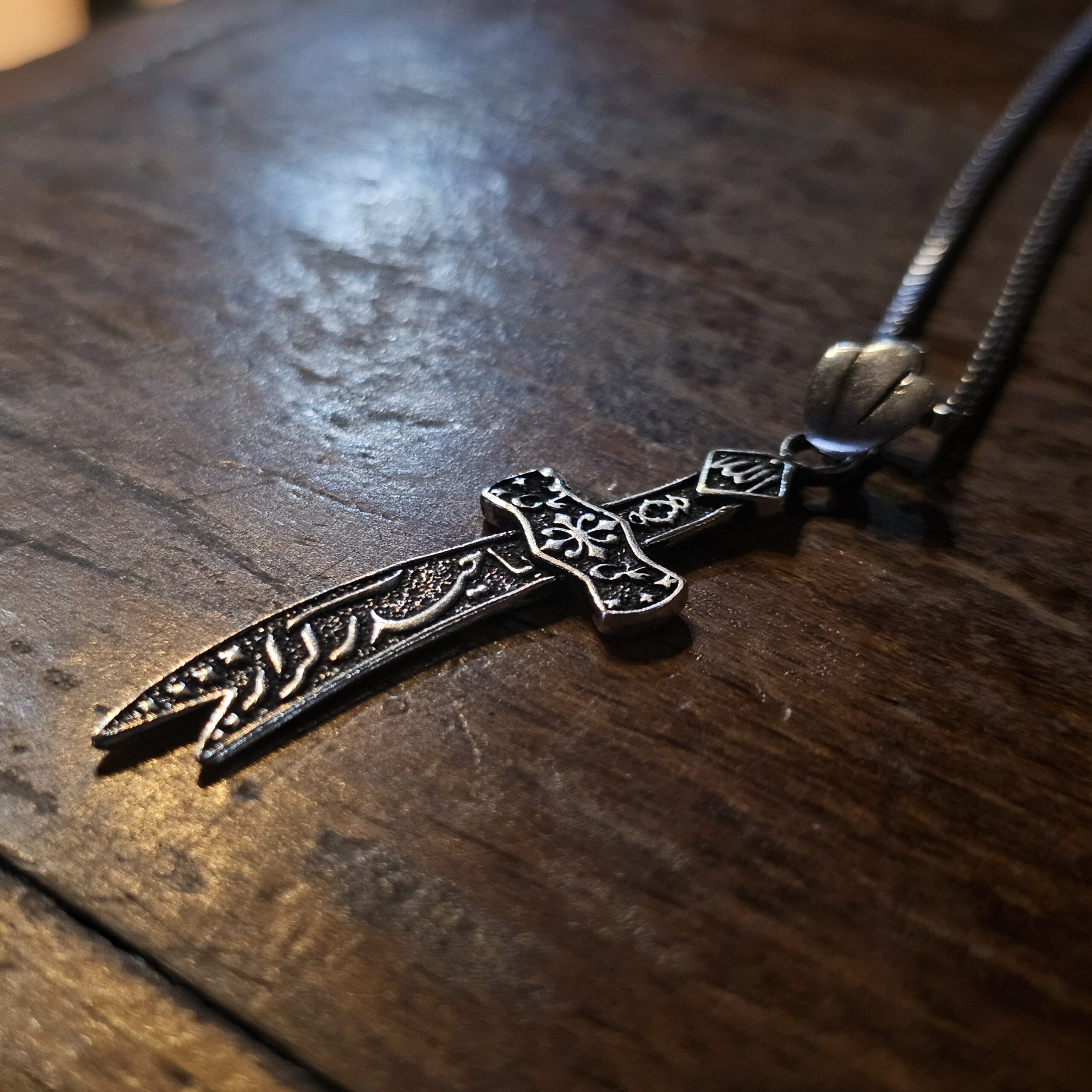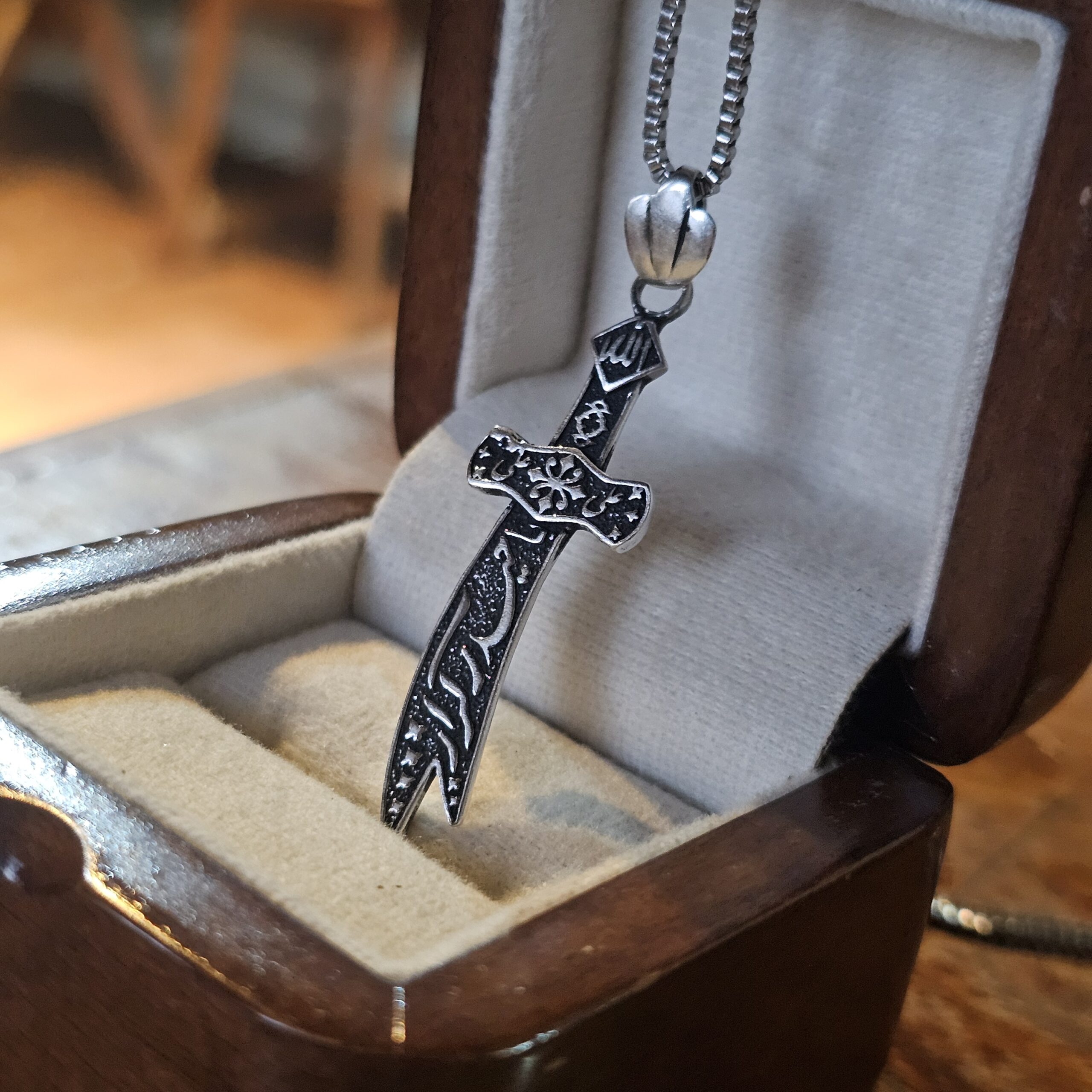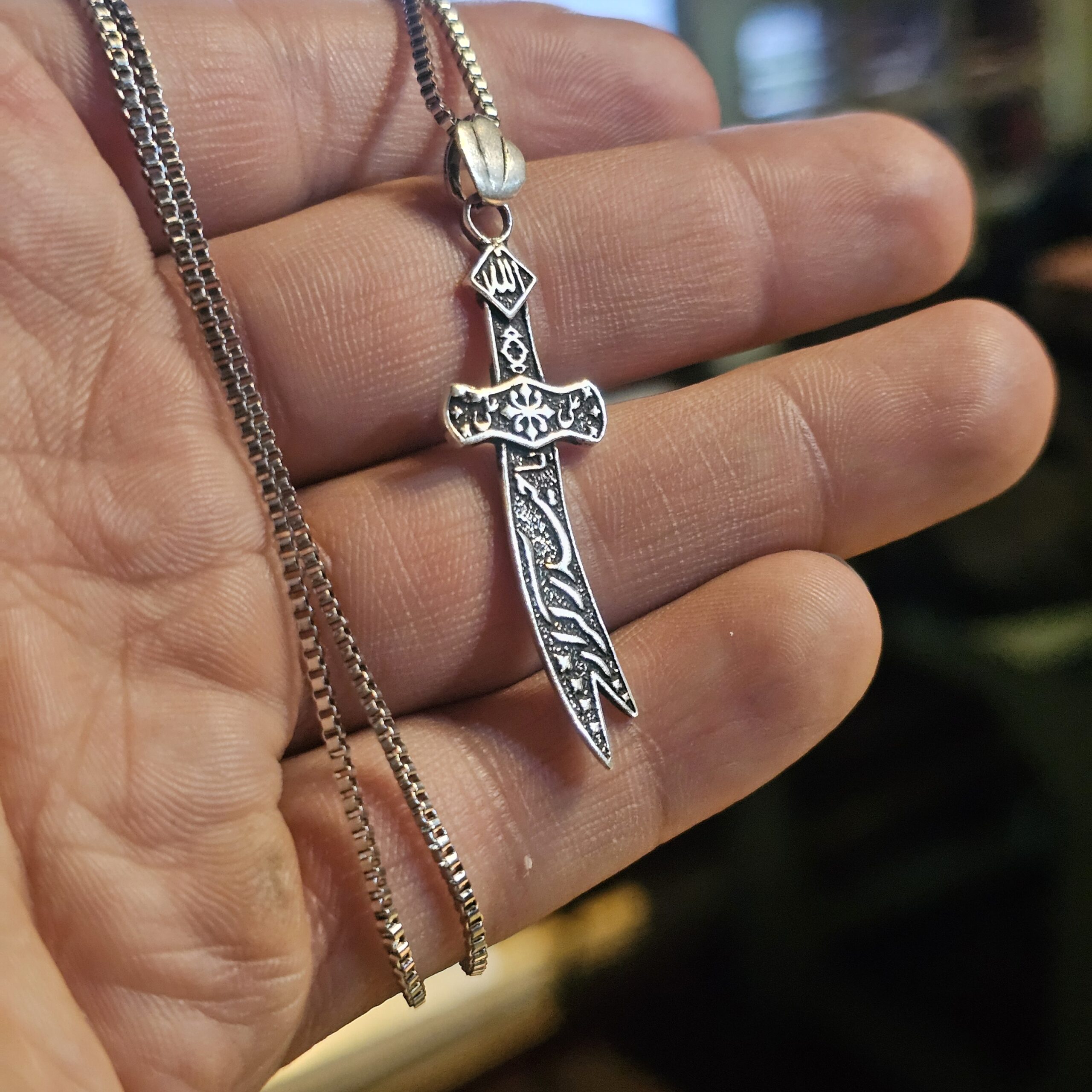گردنبند نقره طرح شمشیر ذوالفقار – حکاکی یا حیدر کرار یک زیور ارزشمند مذهبی است که با الهام از شمشیر مبارک حضرت امیرالمؤمنین علی (ع) طراحی شده است. این گردنبند از نقره اصل با عیار ۹۲۵ ساخته شده و بر روی تیغهی آن عبارت باشکوه «یا حیدر کرار» با دقت و ظرافت حکاکی شده است.